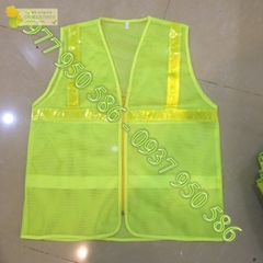 Áo được may 2 lớp, lớp ngoài là dây phản quang, lớp bên trong là vải lót, có vải chạy viền vòng quanh áo để tránh rách.