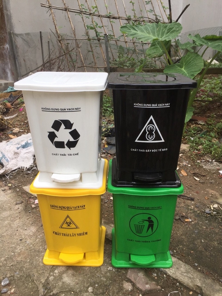 Thùng đựng rác thải y tế có 4 màu sắc riêng dùng để phân biệt các loại rác thải khác nhau: